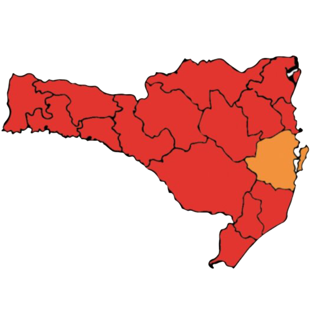 Apenas a região da Grande Florianópolis se manteve no nível amarelo. As regiões Médio Vale do Itajaí e Nordeste foram reclassificadas para a situação gravíssima.