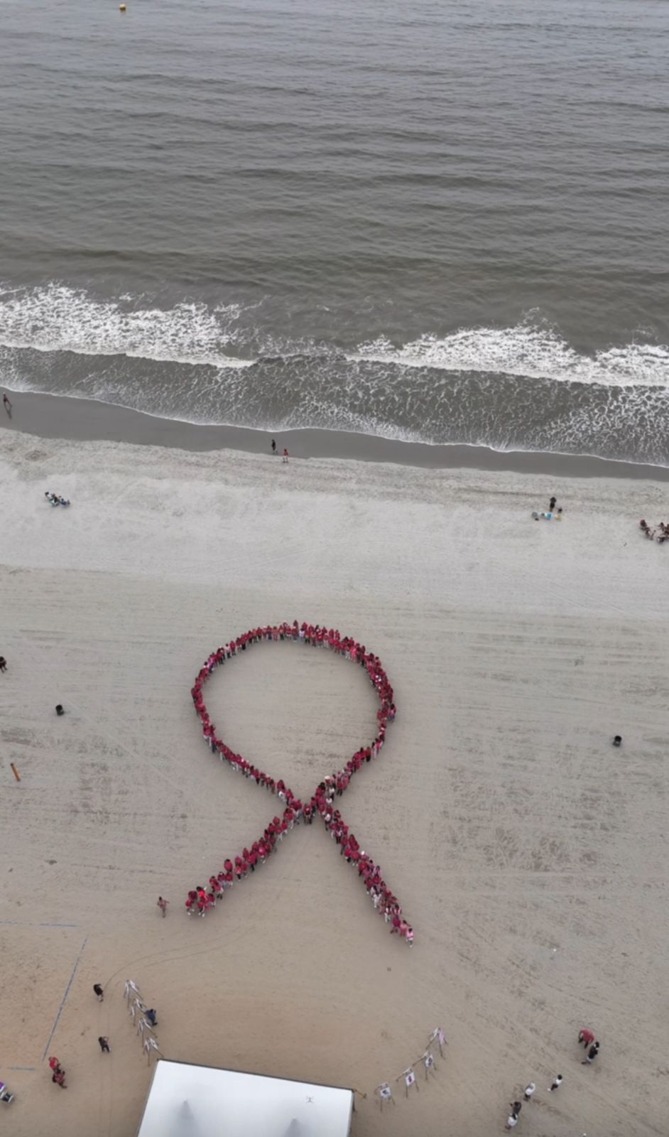 O ato foi idealizado pelo grupo responsável pela página Atlântica BC também contou com a presença da Secretaria de Saúde e da Rede Feminina de Combate ao Câncer e teve como ápice a gravação de um vídeo produzido com o auxílio de drones que fizeram o registro do feito inédito na cidade.