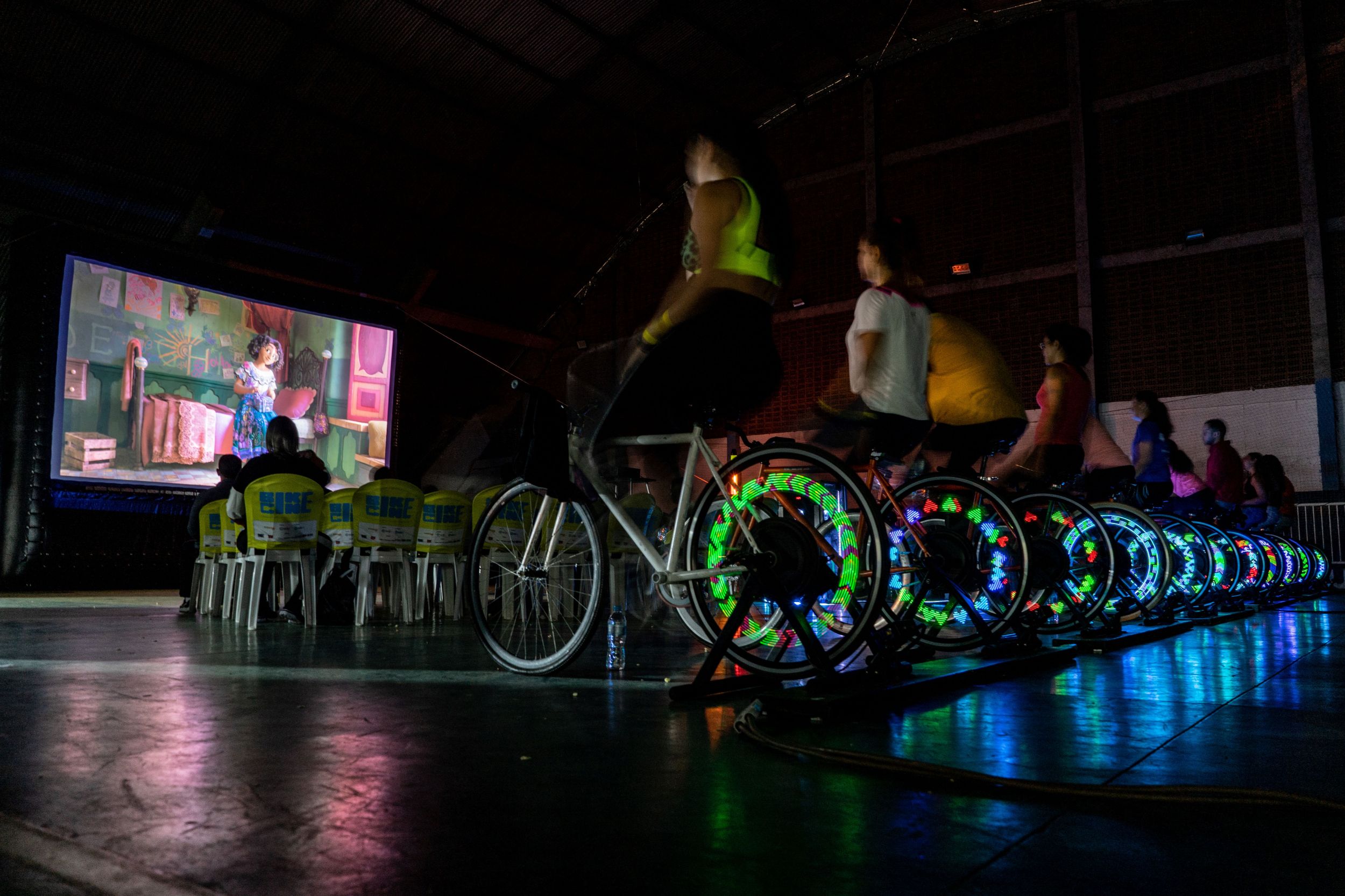 Cinema movido por energia limpa de bicicleta chega a Penha