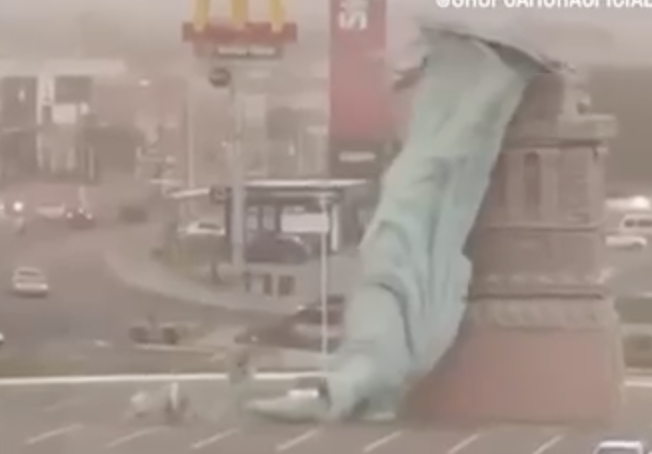 Em Guaíba, município vizinho à capital, a estátua instalada em frente a uma unidade da Havan caiu em razão da intensidade do vento, associada à passagem de um sistema de instabilidade.