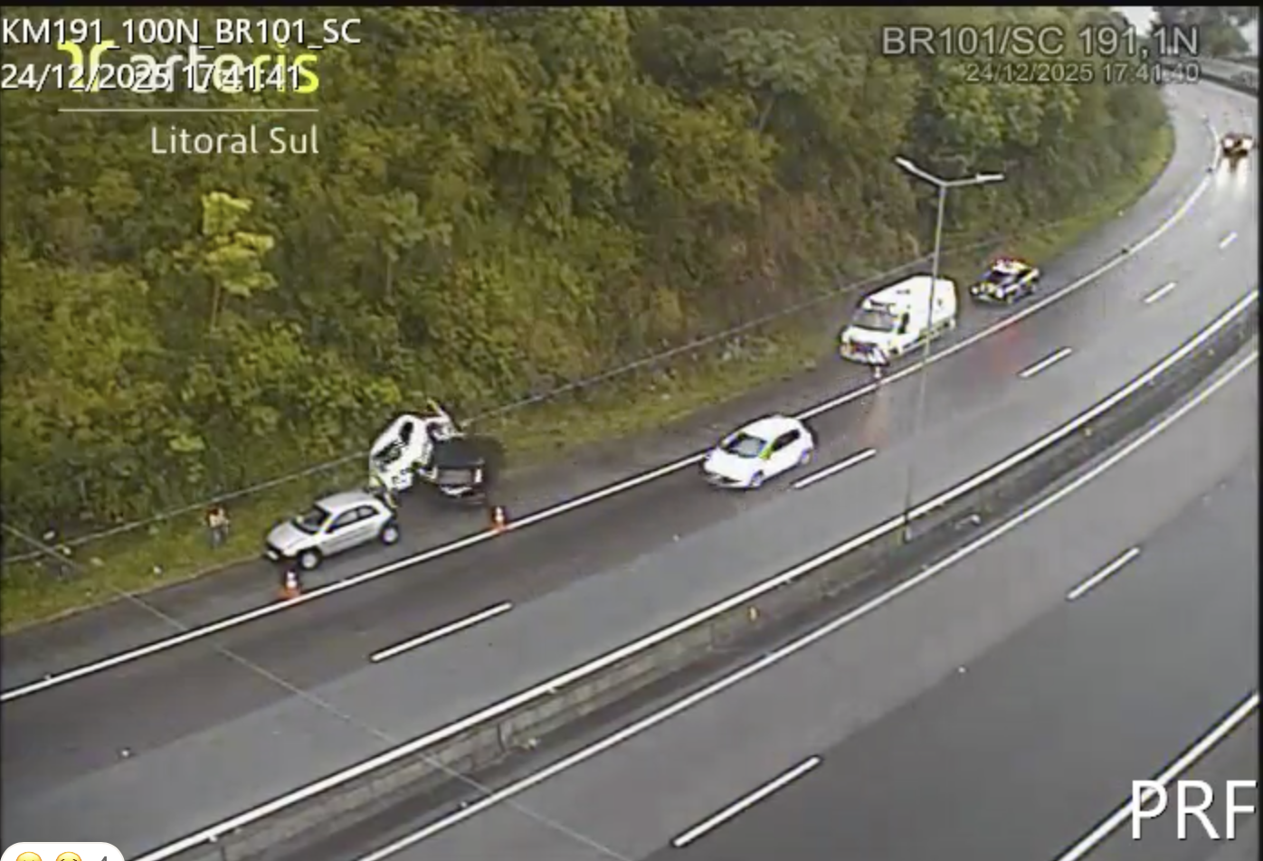 Dois policiais rodoviários federais e duas pessoas que estavam sendo atendidas pela própria PRF durante uma ocorrência ficaram feridos após serem atropelados na véspera de Natal (24), na BR-101, em Biguaçu, na Grande Florianópolis. O grupo estava no acostamento da rodovia, por conta de um acidente ocorrido anteriormente, quando um carro perdeu o controle em uma curva, rodou na pista molhada e atingiu violentamente as vítimas.