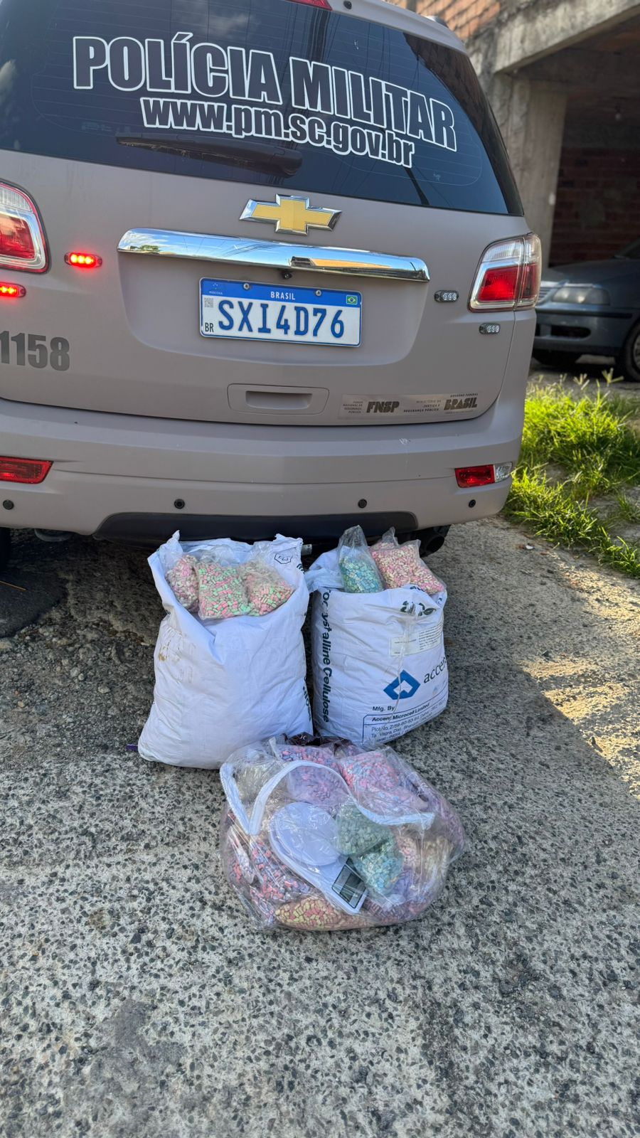 Na abordagem, foi localizada uma quantidade de entorpecentes em posse do homem. Em continuidade à ocorrência, os policiais deslocaram-se até a residência do autor, situada na Rua Monte Caracol, em Camboriú, onde foram apreendidos aproximadamente 120 mil comprimidos de ecstasy.